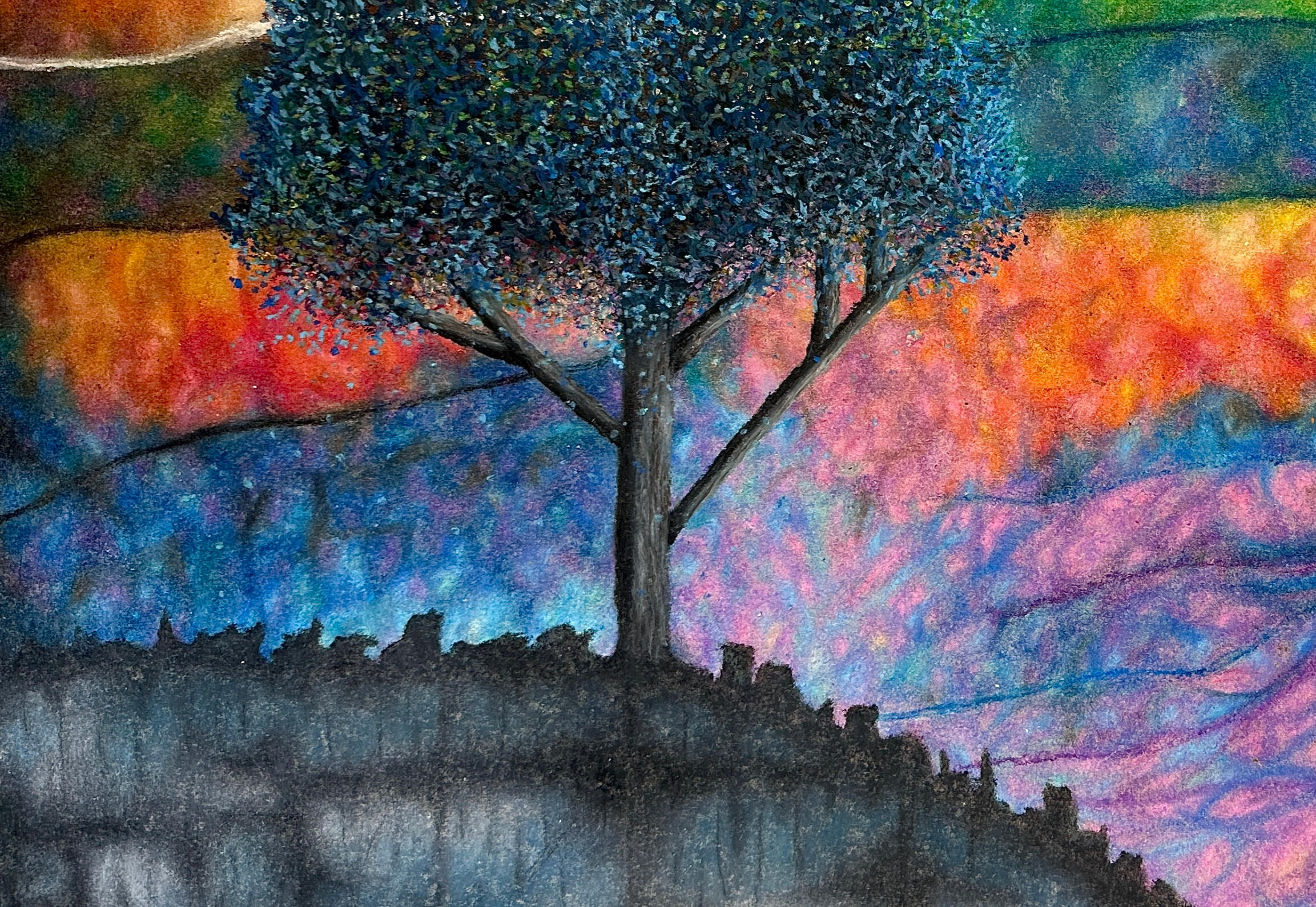 My practice explores the interplay between impressionistic sensibilities and surreal, atmospheric space. Working primarily with oil pastels, I employ an intuitive, process-led approach shaped through self-directed study and ongoing experimentation.My work functions as both a visual record of development and an investigation into perception, mood, and memory. Through my evolving practice, I aim to encourage engagement with creative processes to build confidence, curiosity, and personal expression.