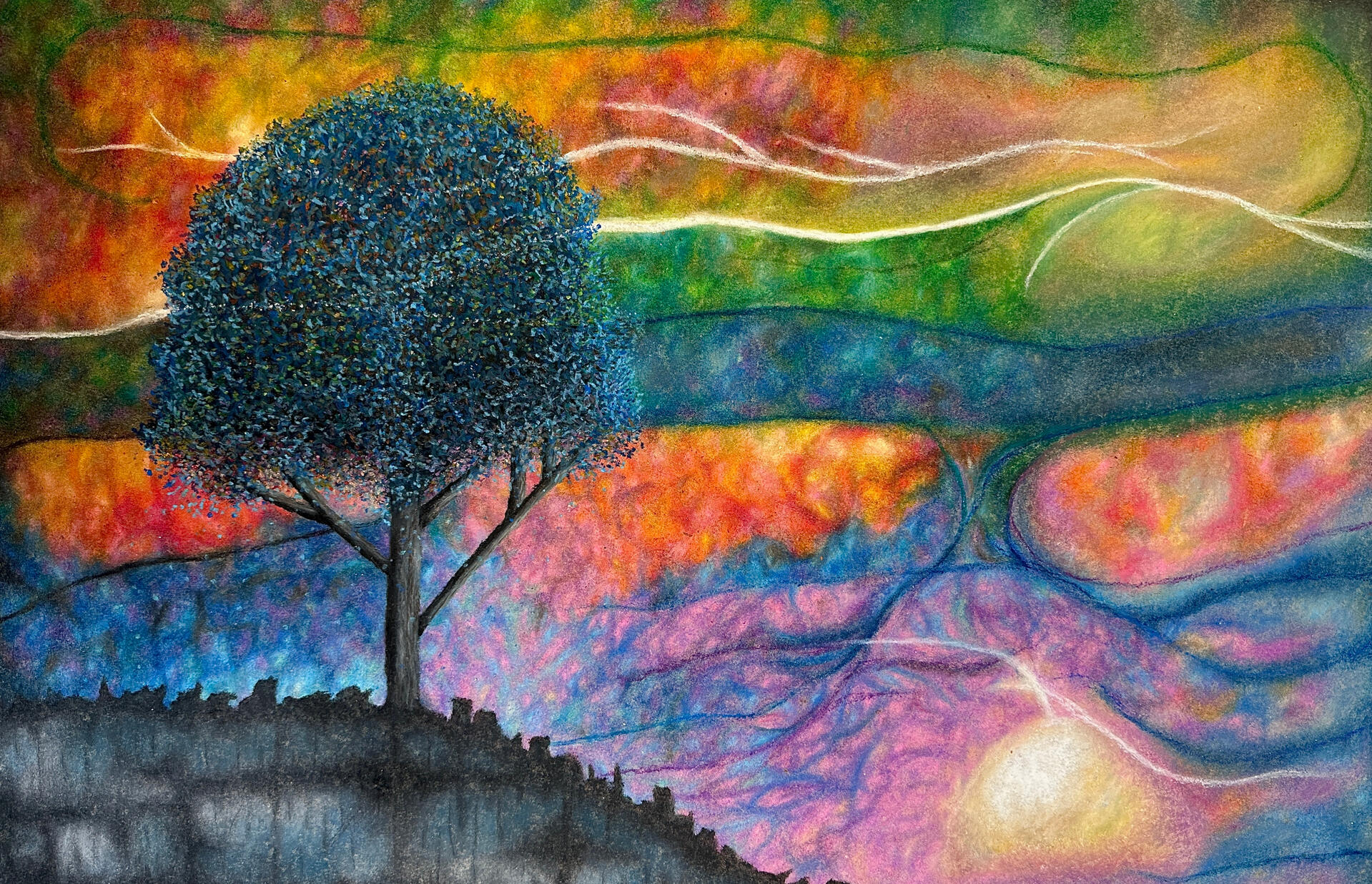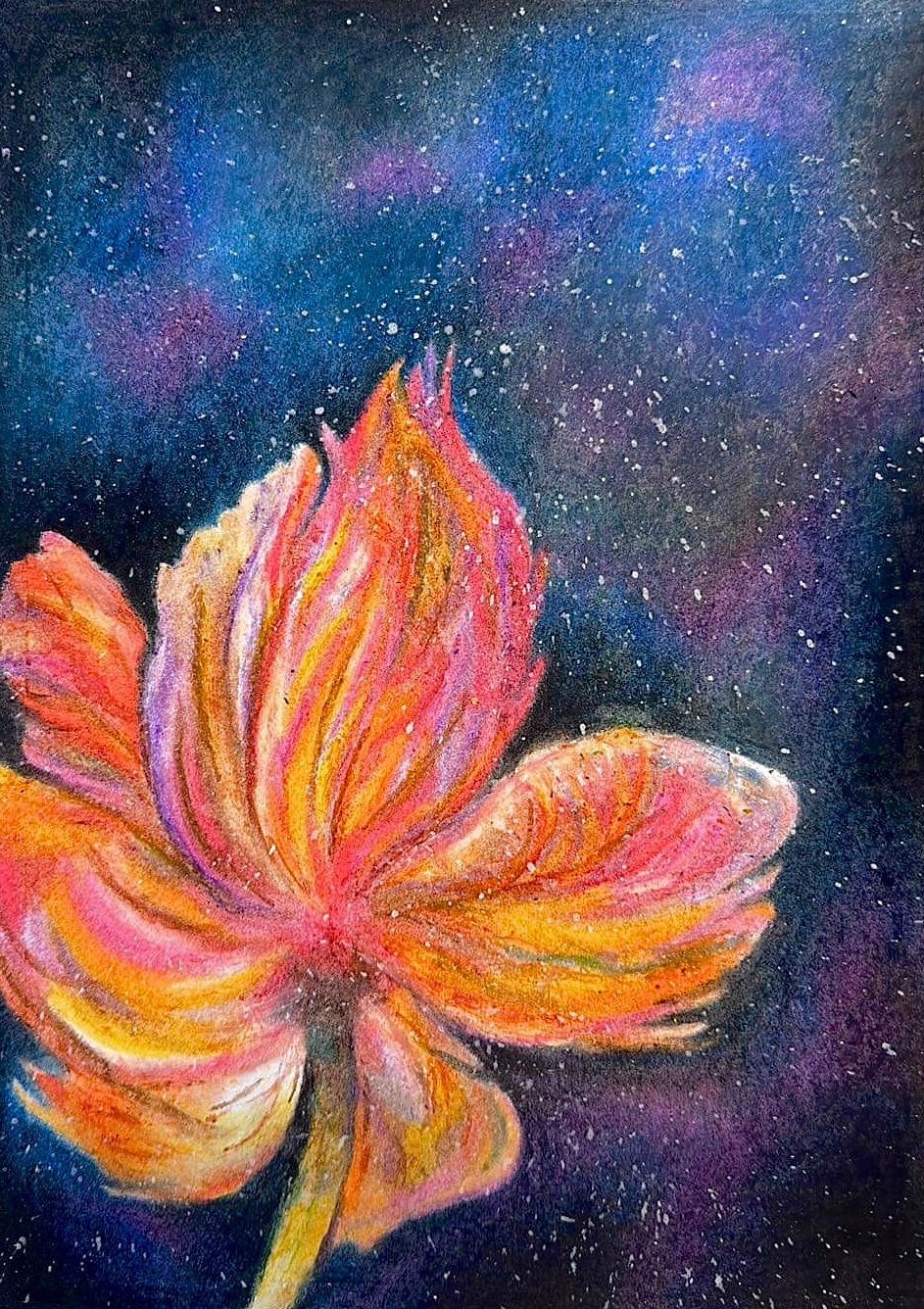 My practice explores the interplay between impressionistic sensibilities and surreal, atmospheric space. Working primarily with oil pastels, I employ an intuitive, process-led approach shaped through self-directed study and ongoing experimentation.My work functions as both a visual record of development and an investigation into perception, mood, and memory. Through my evolving practice, I aim to encourage engagement with creative processes to build confidence, curiosity, and personal expression.